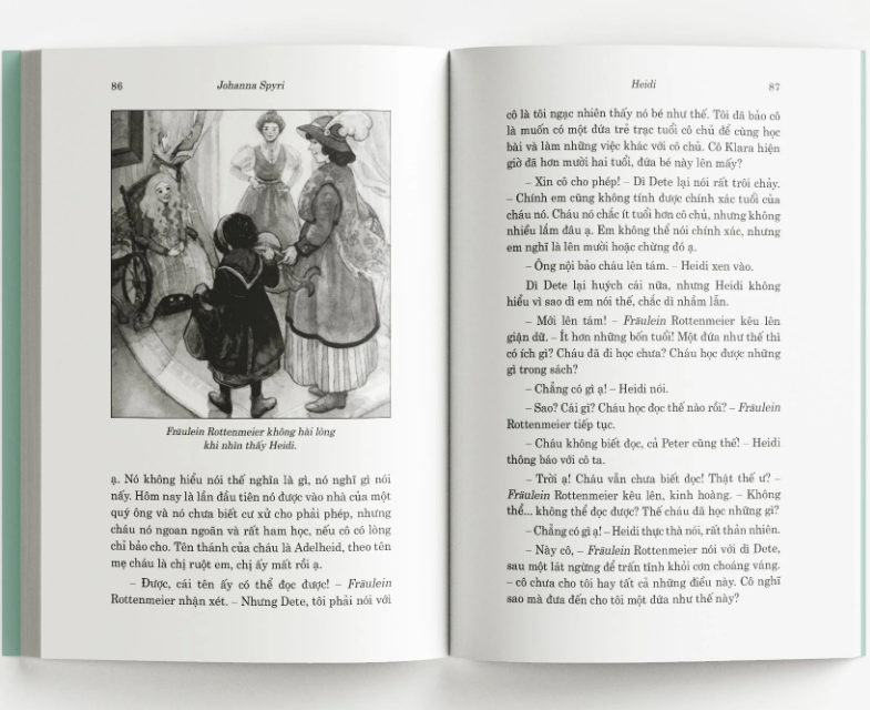 Ra đời cách đây đã 130 năm, Heidi của nữ nhà văn Johanna Spyri - Thụy Sĩ được xem là một tác phẩm kinh điển dành cho thiếu nhi. Với văn phong giản dị, trong sáng, tác phẩm đem đến cho người đọc những bức tranh thiên nhiên thơ mộng, hùng vĩ của đất nước Thụy Sỹ, cùng những điều bí ẩn của tạo vật và tâm hồn con trẻ. Hơn thế nữa, tiểu thuyết này còn là bài ca về tình yêu cuộc sống, về tình cảm ấm áp giữa người và người.