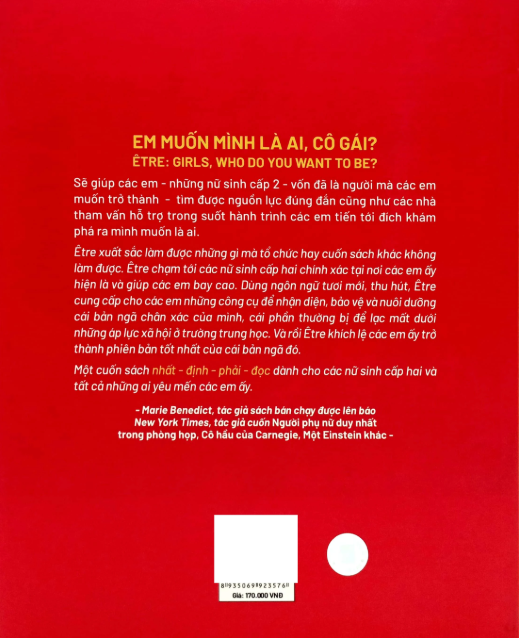 “Être xuất sắc làm được những gì mà tổ chức khác hay cuốn sách khác không làm được. Etre chạm tới các nữ sinh cấp số hai chính xác tại nơi các em ấy hiện là và giúp các em ấy bay cao. Dùng ngôn ngữ tươi mới, thu hút, Être cung cấp cho các em ấy những công cụ để nhận diện, bảo vệ và nuôi dưỡng cái bản ngã chân xác của mình, cái phần thường bị để lạc mất dưới những áp lực xã hội ở trường trung học. Và rồi Être khích lệ các em ấy trở thành phiên bản tốt nhất của cái bản ngã đó. Một cuốn sách nhất-định-phải-đọc dành cho các nữ sinh cấp hai và tất cả những ai yêu mến các em ấy.”