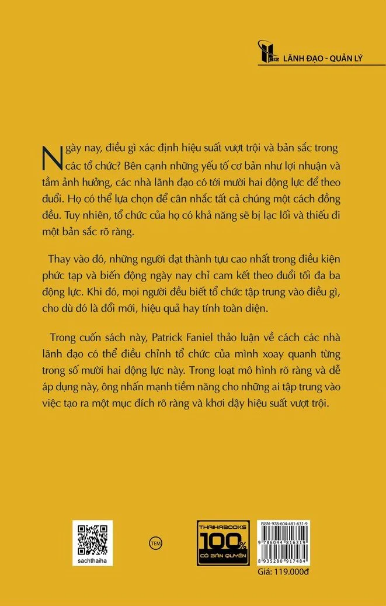 Trong cuốn sách này, Patrick Faniel thảo luận về cách các nhà lãnh đạo có thể điều chỉnh tổ chức của mình xoay quanh từng trong số mười hai động lực này. Trong loạt mô hình rõ ràng và dễ áp dụng này, ông nhấn mạnh tiềm năng cho những ai tập trung vào việc tạo ra một mục đích rõ ràng và khơi dậy hiệu suất vượt trội.