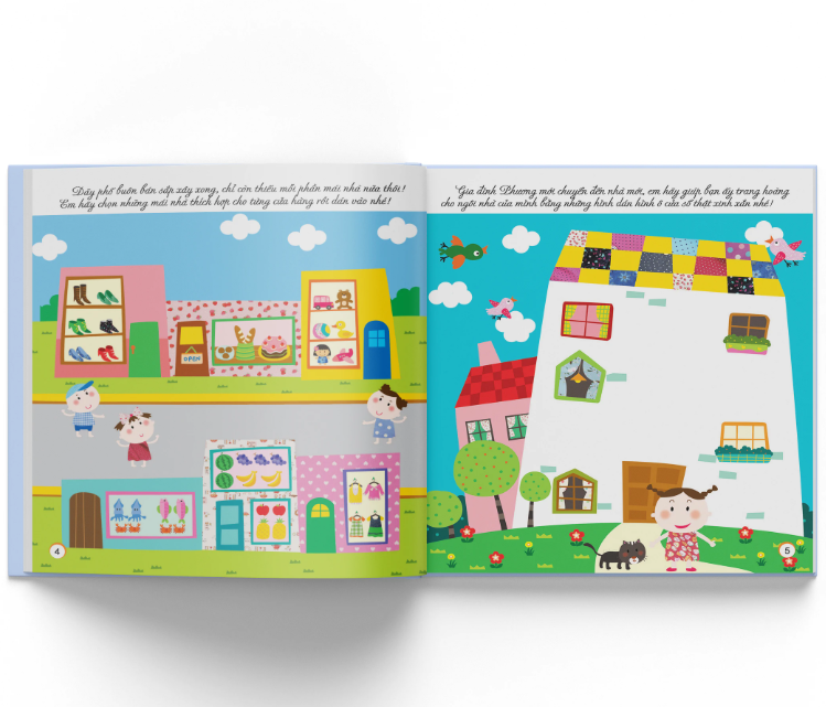 Chủ đề thứ ba,Phát triển chỉ số sáng tạo (CQ),hứa hẹn sẽ đem đến các bài tập mới mẻ hơn cả khi trẻ được dán những chiếc thuyền nhiều màu sắc trên mặt nước, giúp chị em My trồng rau, dán những ngôi nhà xinh xắn lên bãi cỏ để thành phố thêm đẹp và đông vui, dùng họa tiết trang trí cho chiếc váy thêm đẹp, cùng chơi trò thổi bong bóng. Trẻ còn có thể giúp bạn xâu một chiếc vòng cổ xinh xắn để tặng mẹ từ những vỏ sò, vỏ ốc nhặt được, trang trí thêm vảy cho những chú cá đáng yêu hay thám hiểm vũ trụ kì thú và dùng trí tưởng tượng cùng các miếng dán để trang trí cho không trung thêm đẹp...