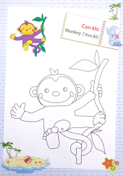 Mỗi trang tô màu gồm có 2 phần: