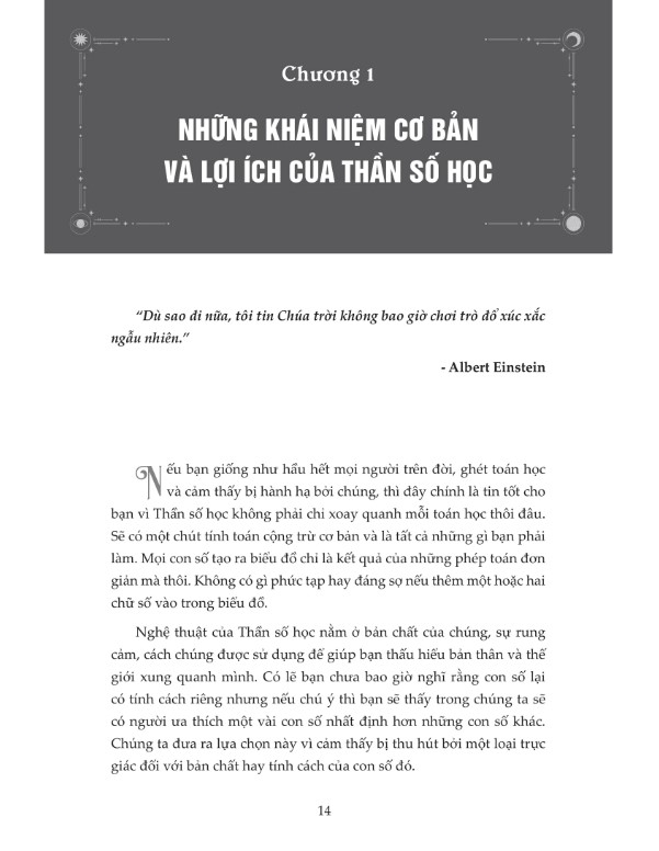 Và bạn có từng nghĩ ngôn ngữ số học có thể là chìa khóa giải mã những câu hỏi về vận mệnh và ý nghĩa cuộc sống luôn thường trực trong mỗi chúng ta chưa? Những con số chứa đựng ý nghĩa sâu xa và có thể ảnh hưởng đến chúng ta nhiều hơn chúng ta vẫn nghĩ. Nếu bạn đã từng băn khoăn bạn là ai và tại sao lại sở hữu những tính cách như hiện tại; nếu bạn đã từng thắc mắc về con đường tương lai và vận mệnh của bản thân, cuốn sách này có thể cho bạn lời giải đáp hợp lý. Nếu bạn đang đau đáu về con đường sự nghiệp và mông lung không biết bản thân thực sự thích gì ; nếu bạn vẫn đang đi tìm câu hỏi về niềm đam mê và khao khát thực sự của bản thân, cuốn sách này có thể cho thể cho câu trả lời thuyết phục.