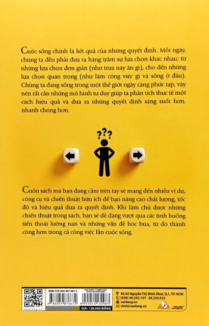 Cuộc sống chính là kết quả của những quyết định. Mỗi ngày, chúng ta đều phải đưa ra hàng trăm sự lựa chọn khác nhau: từ những lựa chọn đơn giản (như trưa nay ăn gì), cho đến những lựa chọn quan trọng (như làm công việc gì và sống ở đâu). Chúng ta đang sống trong một thế giới ngày càng phức tạp, vậy nên rất cần những mô hình tư duy giúp ta phân tích thực tế một cách hiệu quả và đưa ra những quyết định sáng suốt hơn, nhanh chóng hơn.