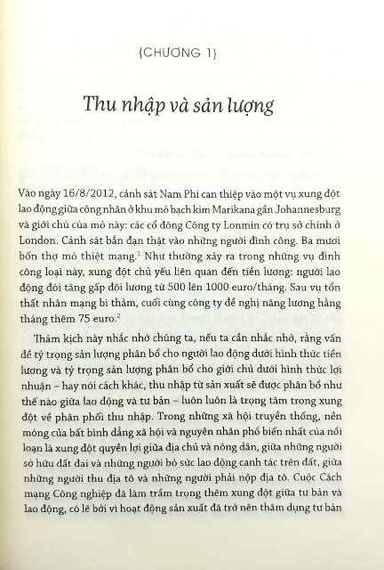 Phân phối tài sản là một trong những vấn đề gây nhiều tranh cãi và được thảo luận rộng rãi nhất thời nay. Nhưng thật ra, ta biết gì về quá trình tiến hóa của phân phối tài sản trong dài hạn? Liệu sự tích lũy tư bản tư nhân có nhất thiết dẫn đến sự tập trung tài sản vào tay một nhóm ngày càng nhỏ, như niềm tin của Karl Marx hồi thế kỷ 19? Hay là các áp lực cân bằng giữa tăng trưởng, cạnh tranh và tiến bộ công nghệ sẽ dẫn đến giảm bất bình đẳng và tăng tính đại đồng giữa các tầng lớp xã hội, như tư tưởng của Simon Kuznets thế kỷ 20? Thật ra, ta biết gì về quá trình tiến hóa của tài sản và thu nhập từ thế kỷ 18, và ta rút ra những bài học gì từ những hiểu biết đó cho thời đại ngày nay? Đây là những câu hỏi mà tác giả cố gắng trả lời trong quyển sách này. Những câu trả lời ở đây không hoàn hảo và chưa hoàn chỉnh, nhưng chúng dựa trên những dữ liệu lịch sử và so sánh rộng lớn hơn nhiều so với những dữ liệu của các nhà nghiên cứu trước đây. Dữ liệu trong nghiên cứu này bao trùm ba thế kỷ và hơn 20 quốc gia, cũng như dựa trên một khung lý thuyết mới, qua đó giúp chúng ta tìm hiểu sâu xa hơn về những cơ chế vận động căn bản của tài sản và thu nhập.