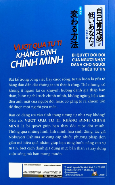 Bạn có đang rơi vào tình trạng tương tự như vậy không? Nếu có, VƯỢT QUA TỰ TI, KHẲNG ĐỊNH CHÍNH MÌNH là bí quyết giúp bạn thay đổi cuộc đời mình. Thông qua những hình ảnh minh họa sinh động, tác giả Nobuyori Oshima sẽ cung cấp nhiều phương pháp đơn giản mà hiệu quả nhằm giúp bạn từng bước nâng cao sự tự tin, biết cách đánh giá đúng mức bản thân và xây dựng cuộc sống mà bạn mong muốn.